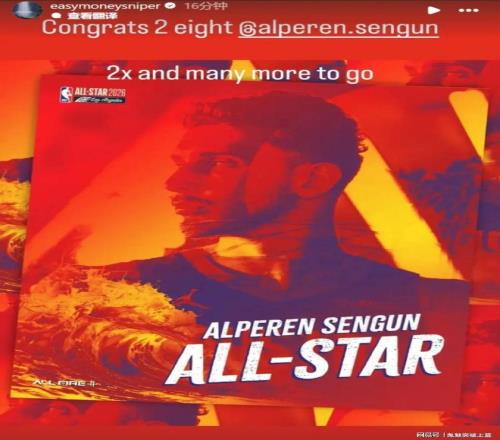 恭喜阿尔佩伦申京连续两年入选全明星!恭喜休斯敦火箭同时拥有两位全明星!期待更好的KD申京!期待更好的火箭!