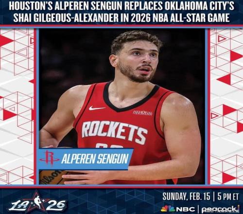 北京时间2月9日,NBA官方宣布,联盟总裁亚当萧华指定火箭中锋阿尔佩伦-申京入选全明星,他将替代此前受伤的俄克拉荷马雷霆当家球星谢伊-吉尔杰斯-亚历山大,代表国际队参加2026年洛杉矶全明星。