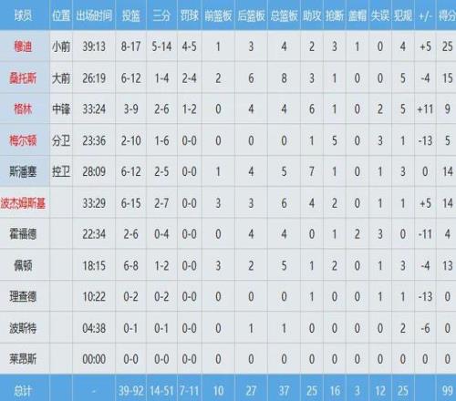 湖人数据如下: