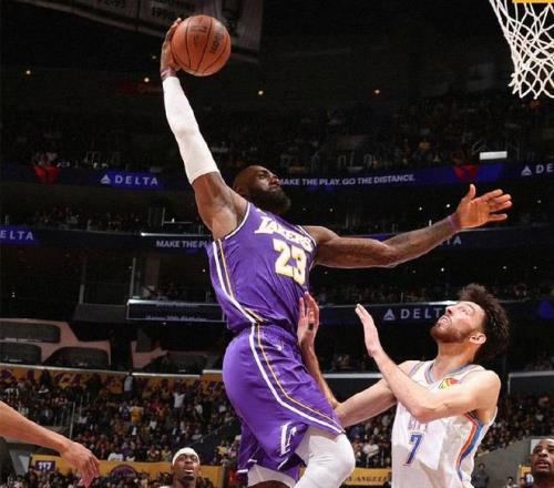 NBA常规赛,湖人坐镇主场迎击雷霆,西部焦点大战。本场比赛之前,湖人32胜19负排名西部第5,虽然近段时间湖人磕磕绊绊,里夫斯复出后,东契奇又受伤,但至少湖人战绩保持得不错,本赛季他们想拿到直通季后赛的门票,应该没什么大问题。由詹姆斯,东契奇,里夫斯组成的核心三巨头,进攻火力拉满,又引进了联盟第一射手肯纳德。另一边的雷霆队,本场比赛之前,40胜13负排名西部第1,虽然雷霆这段时间的统治力,没有赛季初那么强势,但他们仍是今年最大争冠热门之一,毕竟是卫冕冠军和联盟第一的战绩。