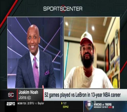 体育播报2月11日宣 今日,前NBA球员诺阿做客ESPN电视节目《Sports Center》,谈到湖人前锋詹姆斯。