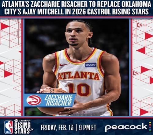 北京时间2月11日,NBA官方宣布,老鹰前锋扎卡里·里萨谢将顶替雷霆后卫阿贾·米切尔参加今年的NBA全明星新秀赛,他加入的是麦迪执教的队伍。