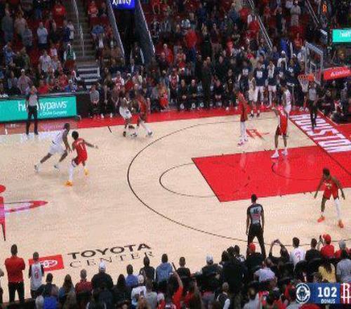 但莱昂纳德操作的时候还增加了一些欺骗性,他没有选择直接向右生突,而是先佯装突左路,用一个转身成功摆脱了阿门·汤普森,最后还吸引泰特过来赔了一个2+1。