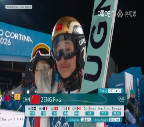 跳台滑雪女子标准台决赛轮,中国小将曾坪顺利完成决赛轮跳跃,得分:114.7 总分:237.3,排名第15。