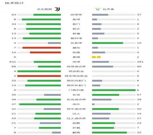 北京时间2月9日意大利足球顶级联赛第24轮,尤文图斯主场对阵拉齐奥。 上半场佩德罗抽射变线破门,库普梅纳斯破门被吹,下半场伊萨克森扩大比分,麦肯尼扳回一球,卡卢卢绝平比分。最终尤文图斯与拉齐奥战成2-2平。
