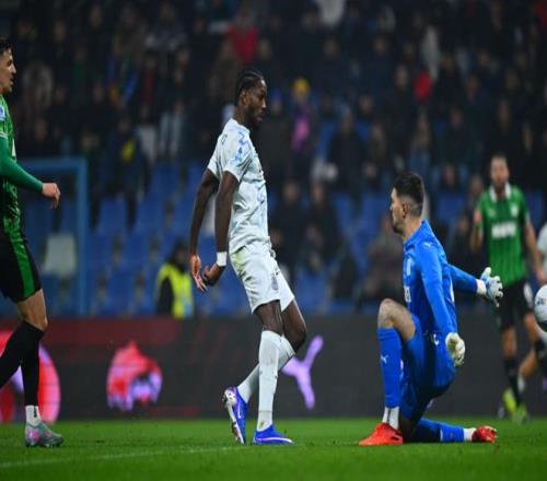 第62分钟,萨索洛后防混乱,小图拉姆射门被门将一扑打在门柱上。