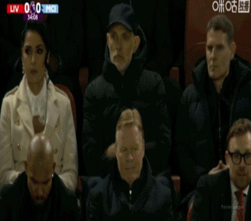 第34分钟,镜头给到现场观战的图赫尔和罗纳德-科曼