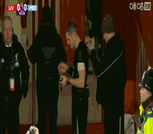 第60分钟,小插曲,主裁判在场边调整通讯设备