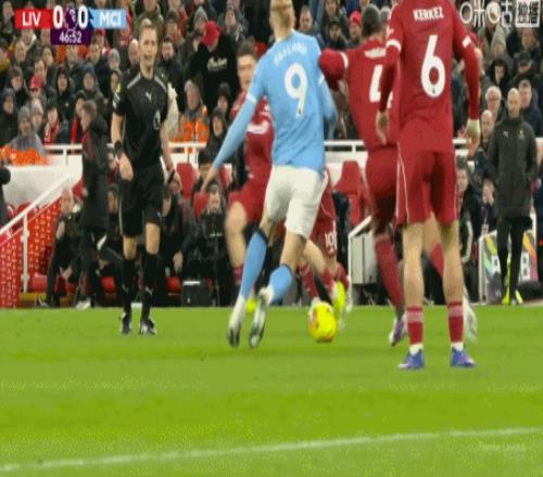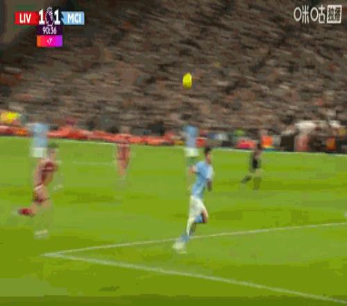 第84分钟,哈兰德头球摆渡,B席门前铲射破门,曼城扳平比分1-1利物浦!