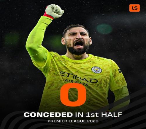 至此,曼城进入2026年以来在英超上半场一球未丢,他们是唯一做到这一点的球队。