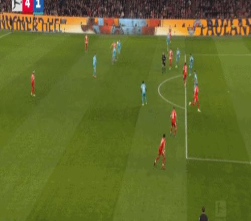 上半时补时期间,凯恩投桃报李送出助攻,迪亚斯破门,拜仁3比1领先。