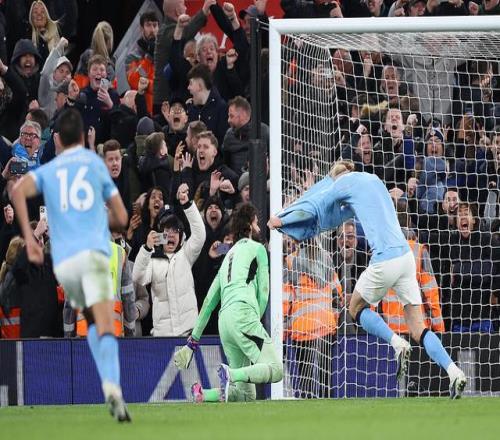 2月9日,英超第25轮利物浦主场对阵曼城,凭借B席和哈兰德的进球,曼城2比1逆转取胜。