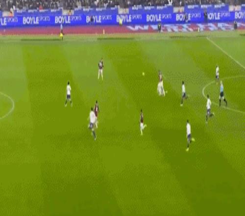 第50分钟,迪乌夫后场长传,卢克-肖冒顶,绍切克策动反击,随后接应鲍恩的传中,门前巧射命中,西汉姆联打破僵局,1-0!